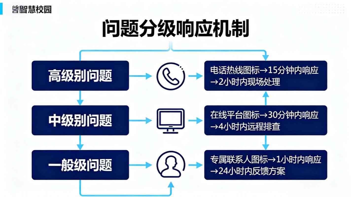 核心價值:服務(wù)協(xié)議條款中對響應(yīng)時效的分級約定,既是技術(shù)服務(wù)承諾的量化體現(xiàn),也是維護校園教學(xué)管理連續(xù)性的制度保障。