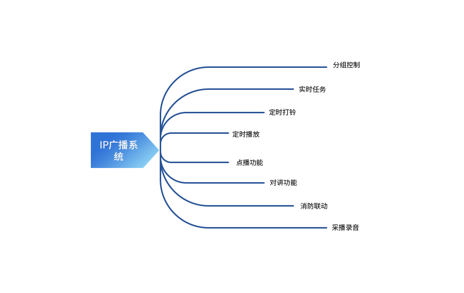 IP網絡系統配套有CD播放器、調諧器、音樂節目庫,滿足學校上課、下課、開展節目等音樂播放,并可實現在不同的區域同時播放不同的內容.