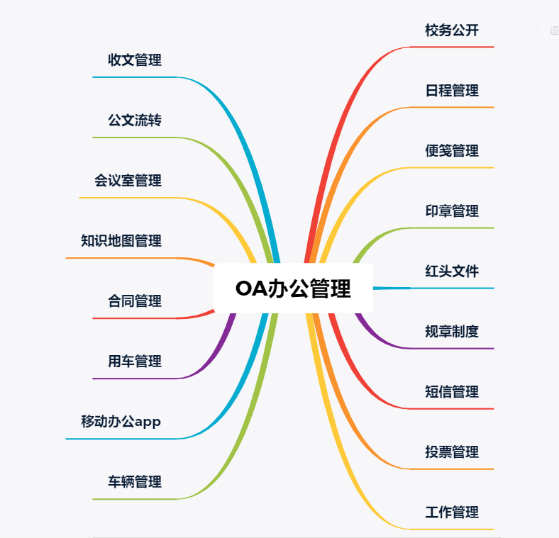 OA管理系統整個系統包含了眾多的模塊:校務公開、日程管理、便箋管理、車輛管理、用車管理、合同管理、知識地圖、會議室管理、公文流程設置、發文管理、收文管理、印章管理、規章制度、短信管理、投票管理、工作管理、自定義表單等模塊。