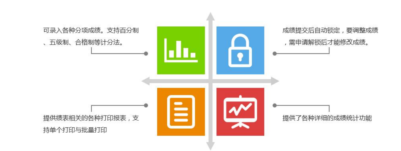 1.管理員設置成績錄入時間,由任課教師錄入成績(可由系秘書代錄)??射浫肫綍r成績、卷面成績、實操成績等各種分項成績(也可直接錄入總成績)。支持百分制、等級級制、合格制等計分法。