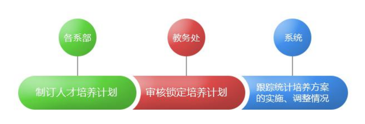 由各系部制訂本系各專業的人才培養方案,包括每學期的課程、學時分配,學生畢業要求等。培養方案制訂完成后,由學校教務處進行審核與鎖定,鎖定的培養方案必須在解鎖時