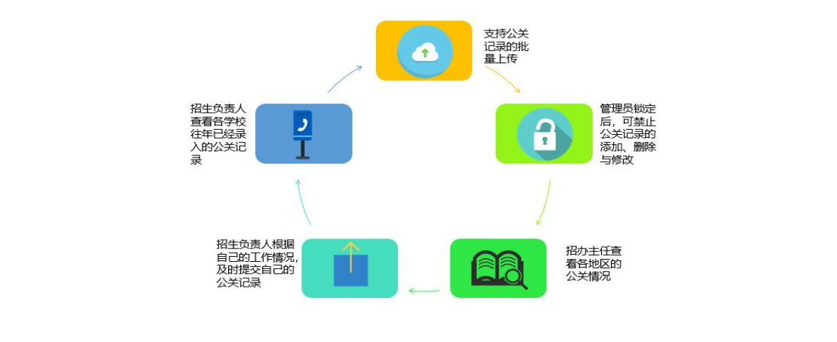 各地區(qū)招生負(fù)責(zé)人根據(jù)招生情況,可自由上傳等級(jí)自己公關(guān)記錄,招生負(fù)責(zé)人可查看各學(xué)校往年錄入的公關(guān)記錄,招生辦主任可查看各地區(qū)公關(guān)情況。