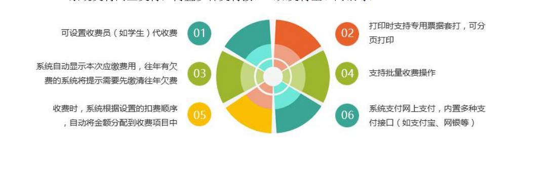 學生收費管理系統與教務系統,學工系統實現數據互通;實現網站支付功能,實現學生在家,在宿舍,只要能夠上網即可通過支付寶,微信,網銀對產生的訂單進行支付。服務網大廳中的web網上查詢使得數據查詢更加便利,財務負責人通過平臺查看學生收費情況,院系老師通過查詢平臺查詢本院系實時收費情況等,院系領導即可查詢到學校費用的應收,已收,欠收情況的統計,為決策提供了數據依據;學生通過網上即可查詢自己應交,已交的費用。用過服務大廳網上查詢系統在提高工作效率的情況下同時也保證了數據的及時性,有用性。