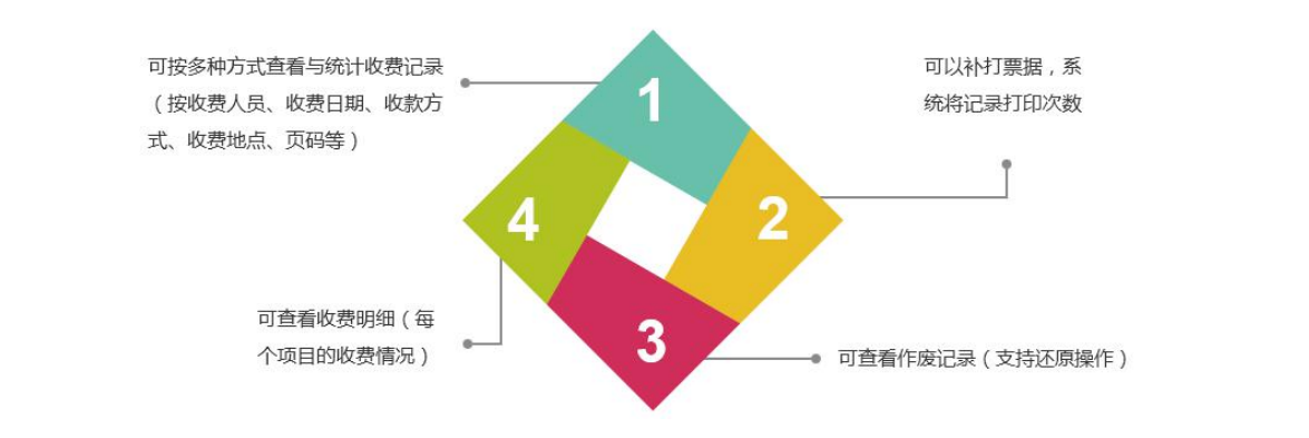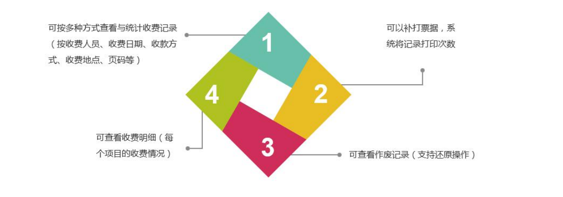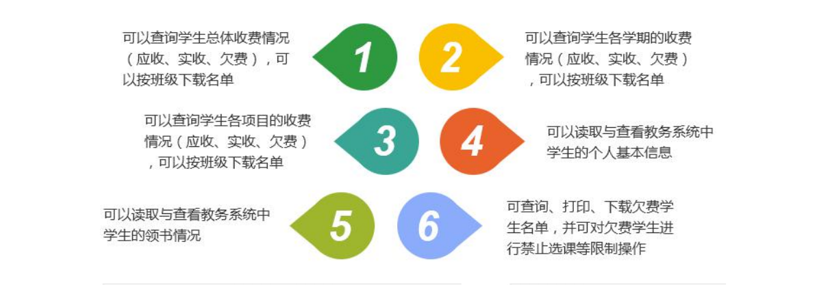 1.可以查詢學生總體收費情況(應收、實收、欠費),可以按班級下載名單。
